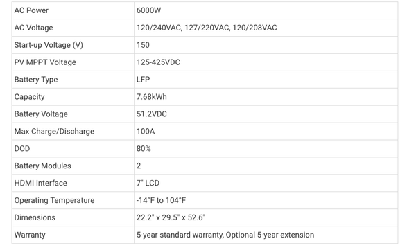 The Soluna S8 is an 8kWh battery backup system that can output up to 6,000W (6kW) of power. The Soluna S12 has a 12kWh battery and can output up to 8,000W (8kW).